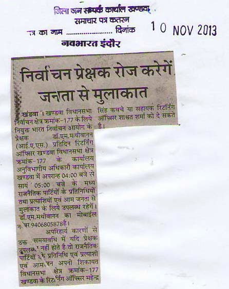 दिनांक 10 नवम्बर, 2013 को समाचार पत्रों में प्रकाशित समाचार पत्र कतरनें